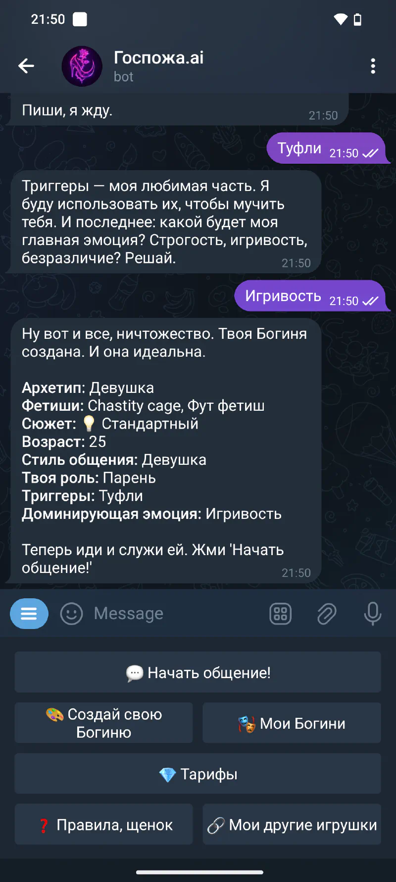 - Госпожа.ai — создай идеальную Финдом-Домину