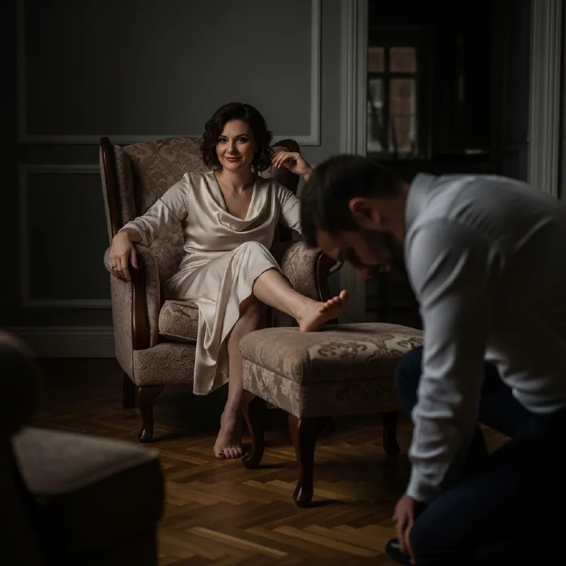 - Перенос власти: Её стопы становятся символом её власти и её выбора. Поклоняясь им, ты поклоняешься её праву выбирать лучших мужчин, чем ты.