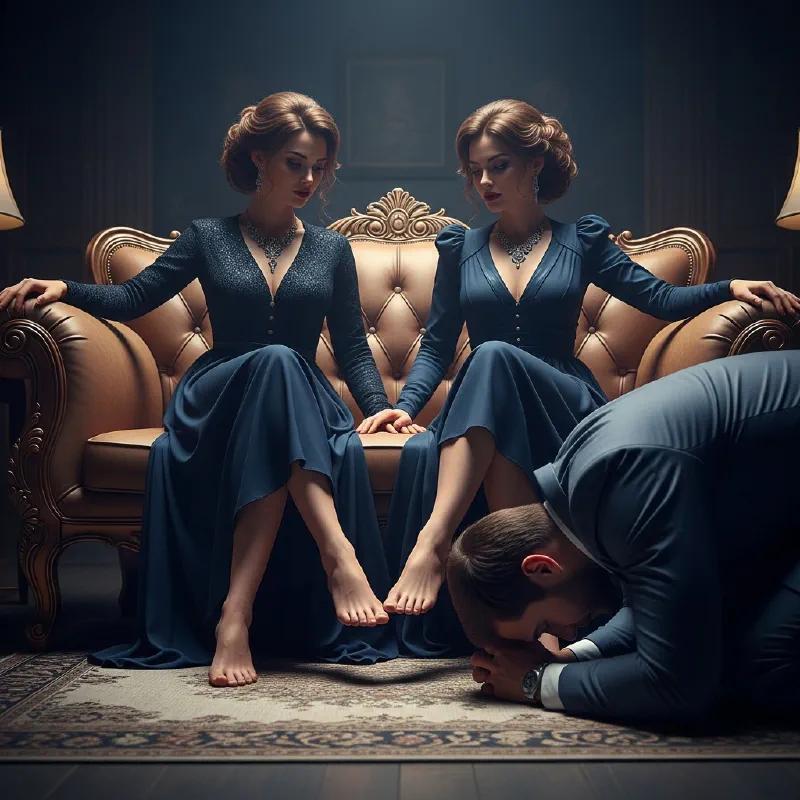 - Начало ритуала: Туфли и сапоги. Сцена часто начинается с того, что я сижу на троне (или просто на диване, что для вас одно и то же), а вы оба на коленях передо мной. Я приказываю вам снять мои туфли. Сам акт расстегивания ремешка или снятия сапога — это уже момент передачи власти. Вы получаете доступ к моим ногам, но только по моему разрешению.